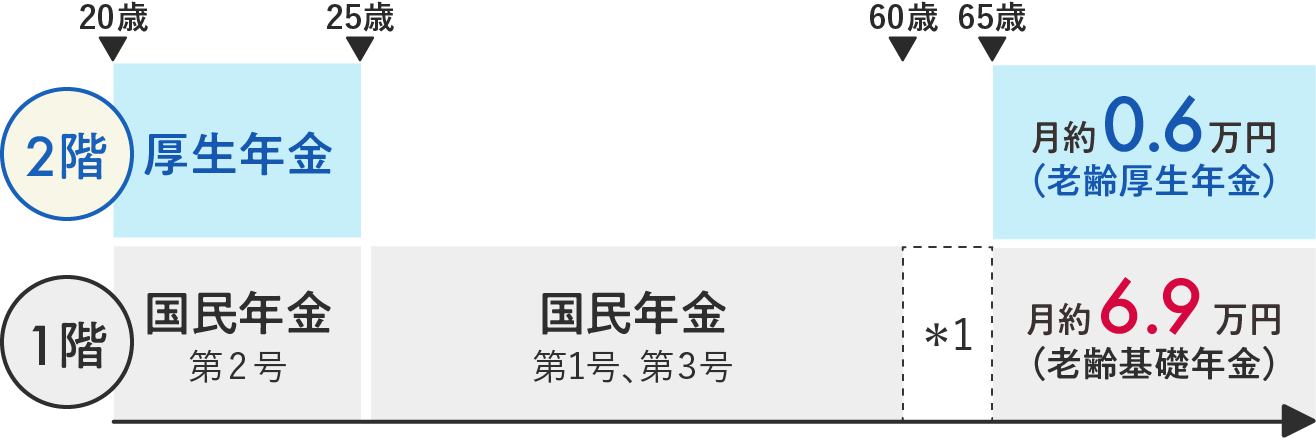 *5 第2号被保険者期間は65歳までですが、60歳〜65歳の期間は国民年金(老齢基礎年金)の年金額の計算には原則として反映されません。
